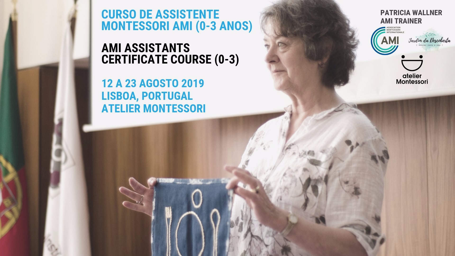 É certificado pela Associação Montessori Internacional (AMI), chega-nos através do Jardim da Descoberta Instituto e vai decorrer em Lisboa 1a edição do Curso de Assistente Montessori do nascimento aos 3 anos em Portugal. Irá decorrer entre os dias 12 e 23 de Agosto de 2019, com pausa Domingo, dia 18 de Agosto (Nota: haverá Curso no feriado dia 15 de Agosto) Horário: de segunda a sexta feira entre as 10:00 e as 17:30 horas, e Sábado das 10:00 às 17:30 horas.